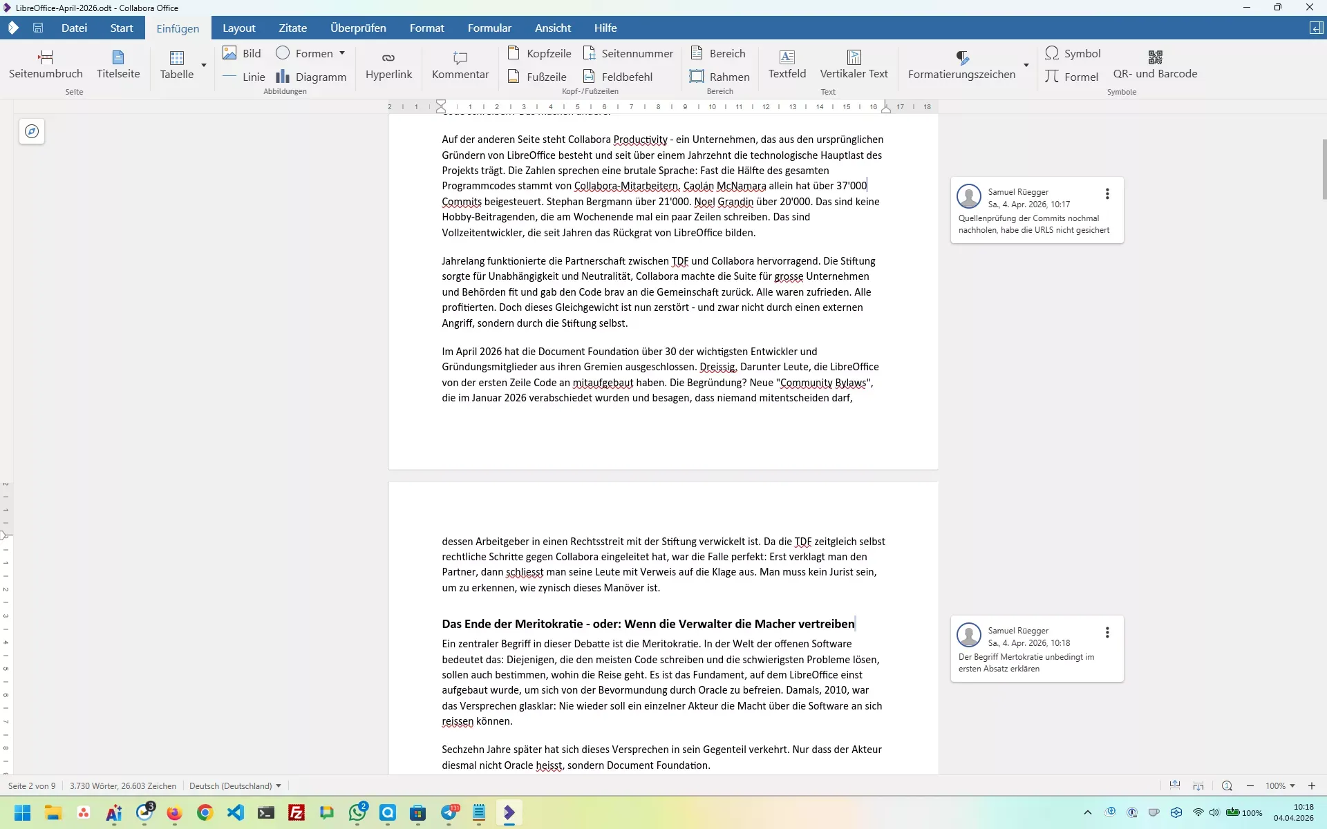 Die Kommentarsektion befindet sich hier: LibreOffice am Abgrund: Wie die Document Foundation ihre eigenen Gründer vor die Tür setzte